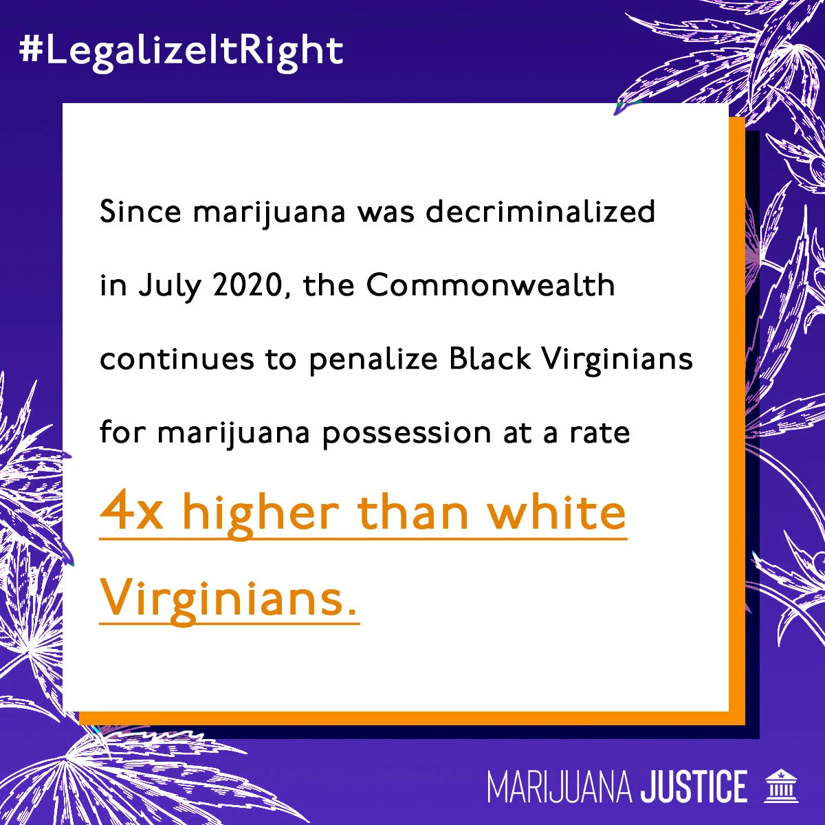I served as a Digital Communications Specialist for Marijuana Justice for the 2021 Virginia General Assembly Session. I helped with outreach and the design of external communications for their successful Legalize It Right campaign.